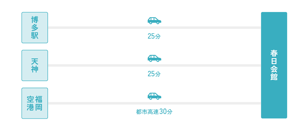 120名の式場2つを完備、全館貸切で250名収容可能です。都市高 野多目インターより約7分。JR博多駅南駅よりタクシーで約3分。
