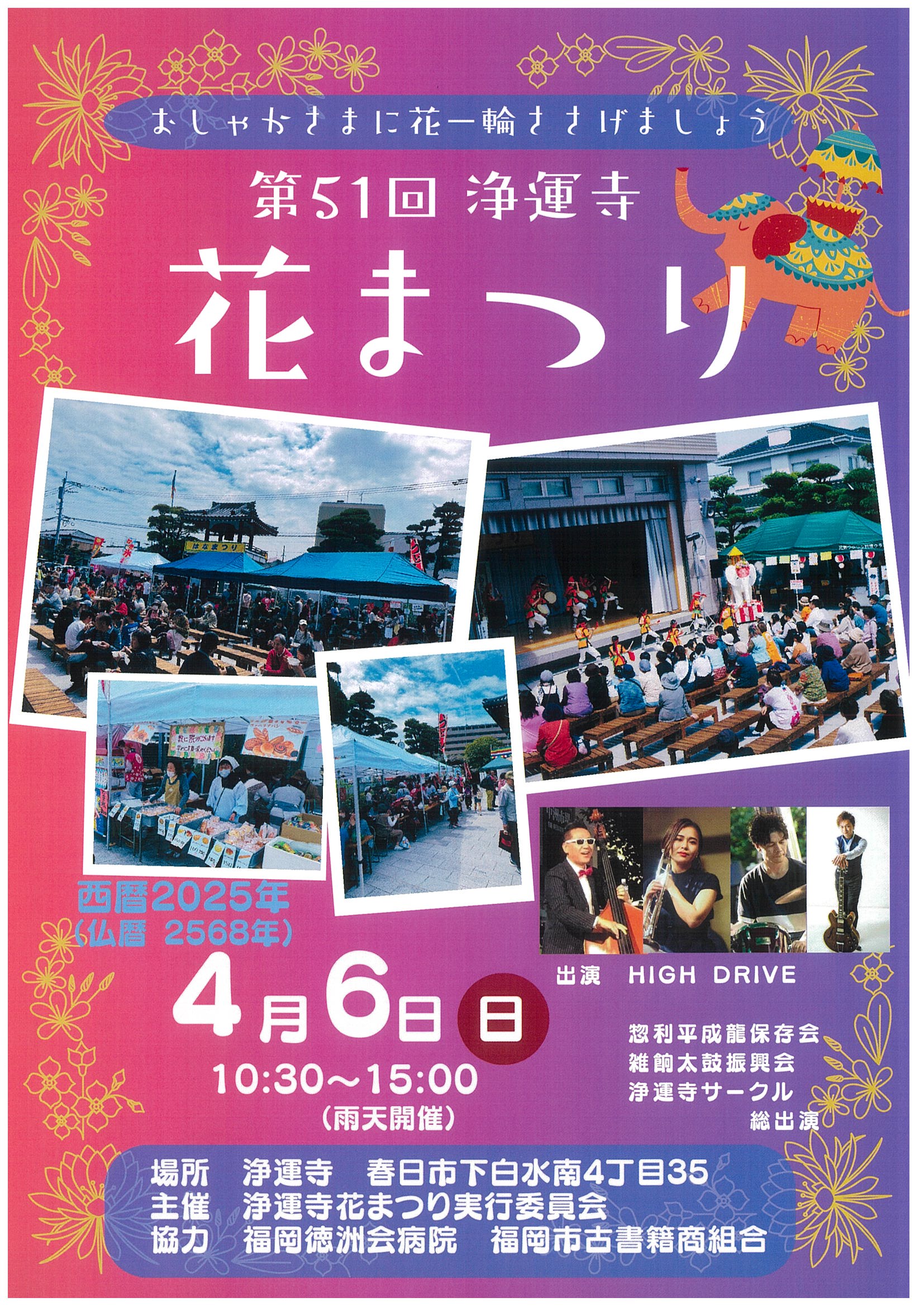 天国社からのお知らせ 福岡の葬儀社「天国社」 天国社からのお知らせ イベント情報 第51回浄運寺 花まつり 第51回浄運寺 花まつり 2025.04.05 イベント情報 4月5日、春日市下白水南にある 浄運寺において 「浄運寺花まつり」が開催されます。 今回も、天国社の花千里から 生花販売で出店致します。 花千里の花売りをはじめ、 販売コーナーや体験コーナー、 ステージ上での演奏など 一日を通して楽しめるイベントが 盛りだくさんです。 皆様ぜひ、お越しください!! 些細と思われる事も、お気軽にご連絡ください。 24時間365日対応・通話無料 電話をかける メールでご相談 無料資料請求 戻る カテゴリー 新着情報 お知らせ イベント情報 葬儀の知識 福岡の葬儀情報 家族葬について お客様の声 ご葬儀事例一覧 年別アーカイブ 2025年 2024年